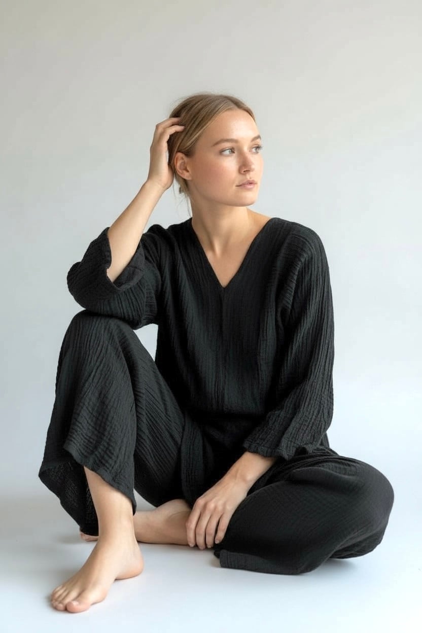 ダブルガーゼは、二重に織られた生地で、驚くほど軽やかで柔らかい肌触りが特徴です。通気性も抜群で、年間を通じて快適に着用できます。その優しい肌当たりが、ストレスフリーな毎日をサポートします。