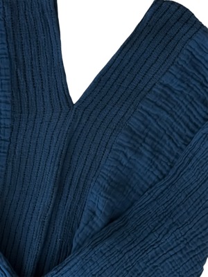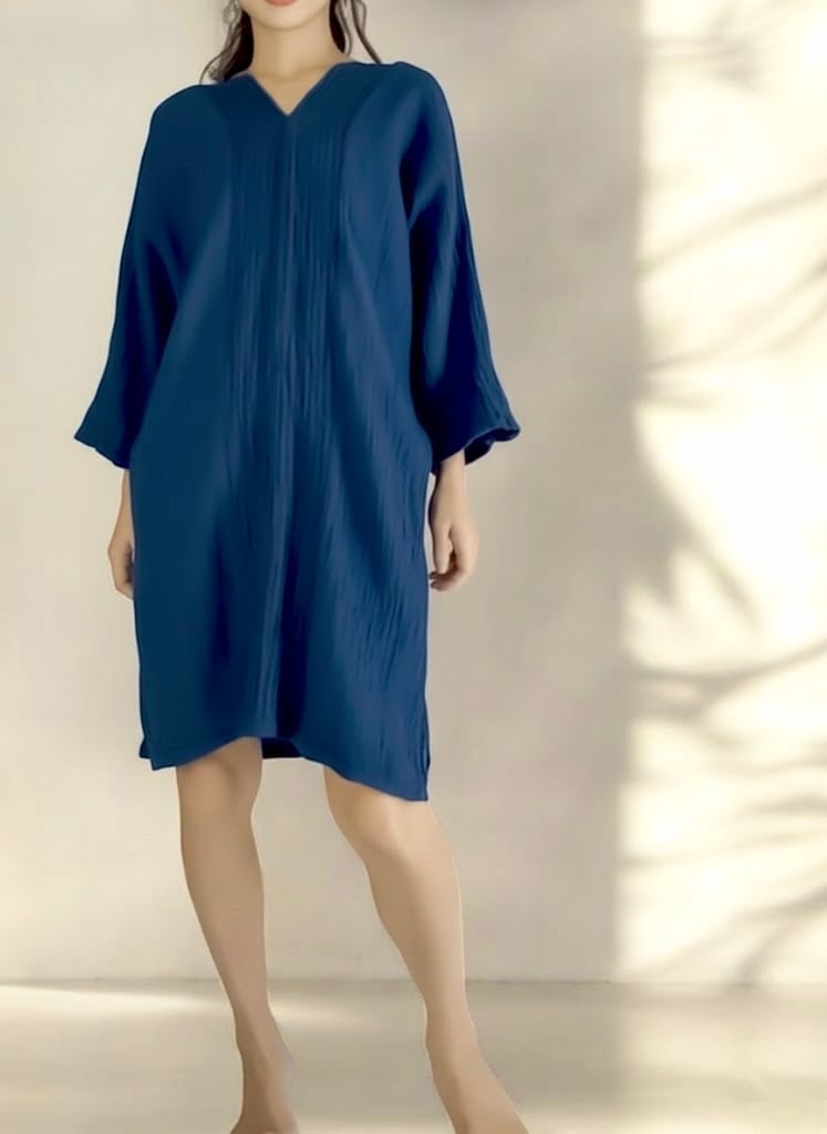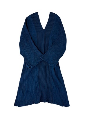 ストレスフリーな着心地で、家でも外でも自然体でいられるダブルガーゼ素材のチュニックドレス。ネイビーカラーは、知的で洗練された印象を与え心を落ち着かせる作用があります。