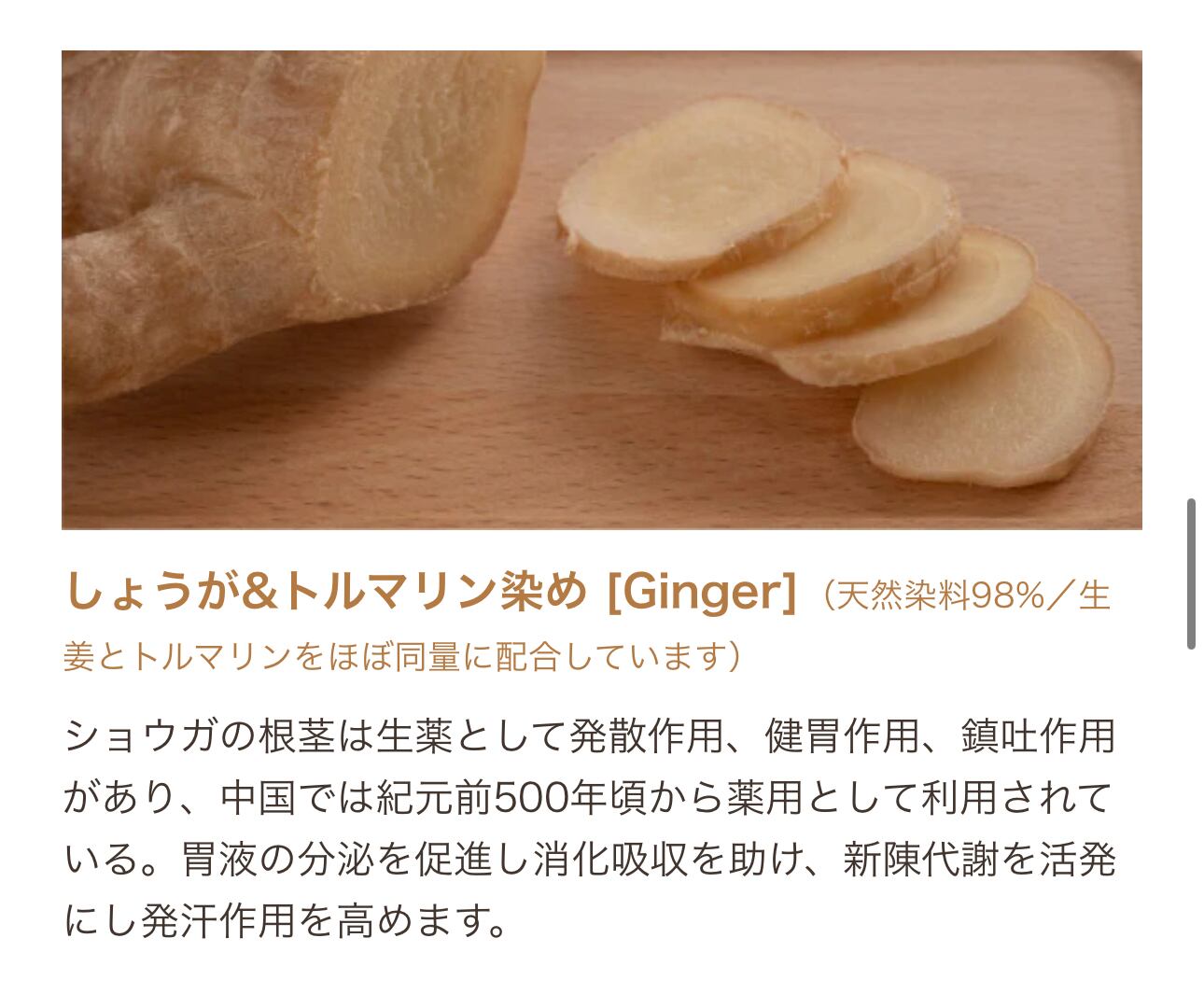 (天然染料98%/生姜とトルマリンをほぼ同量に配合しています)
