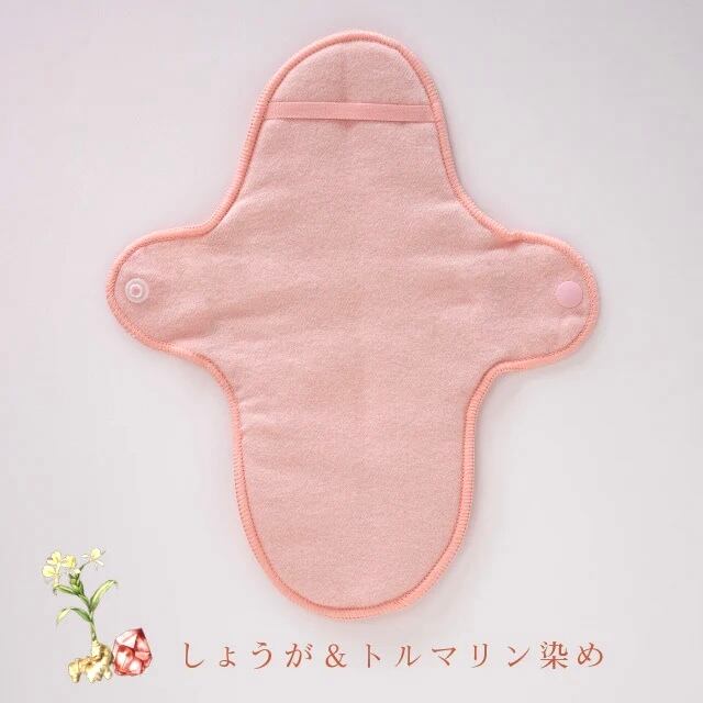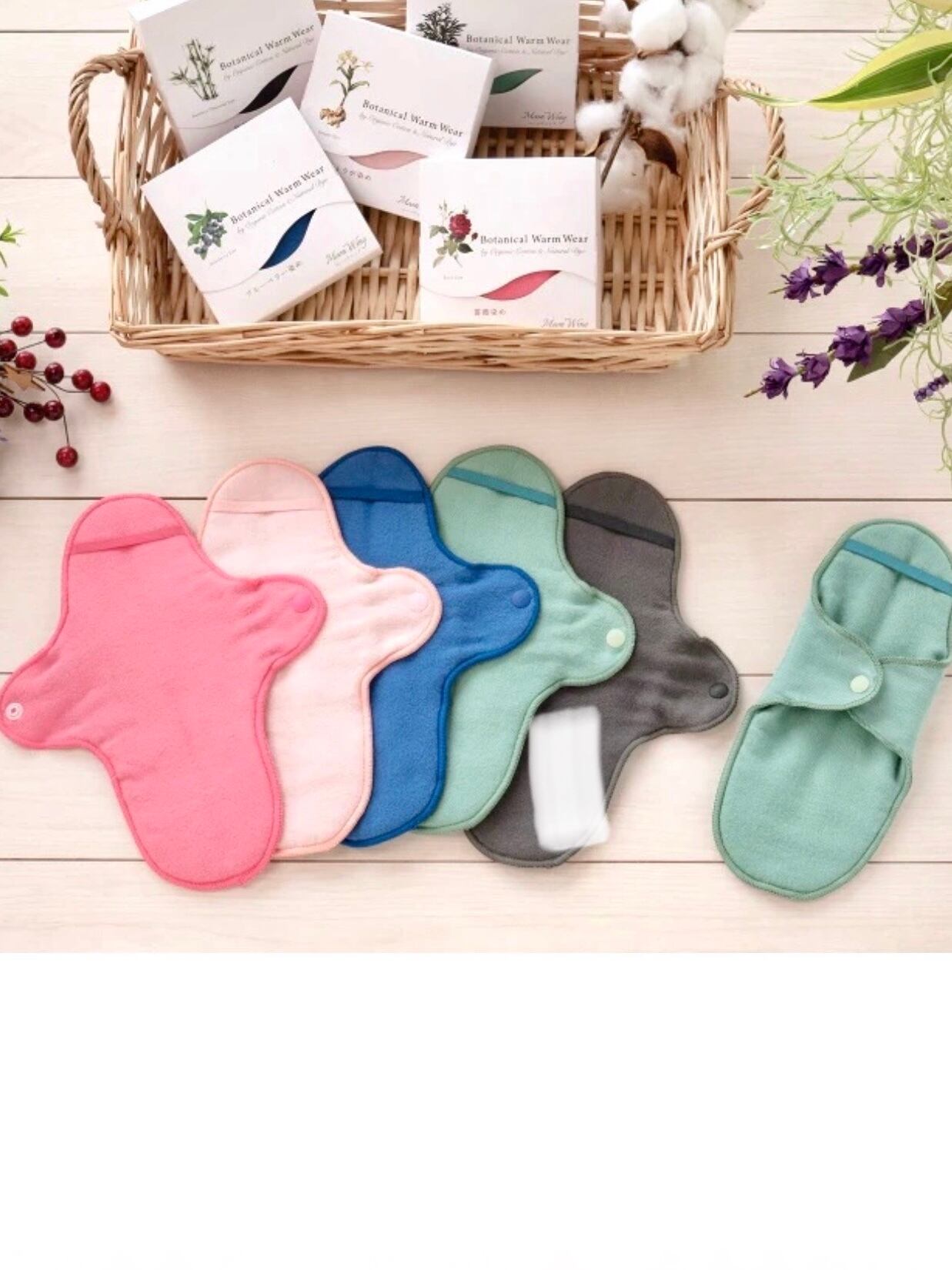 植物原料と天然石トルマリンで染めたオーガニックコットンのBotanical Warm Wear布ナプキン・シリーズは、生理中の心と身体を温め癒してくれます。