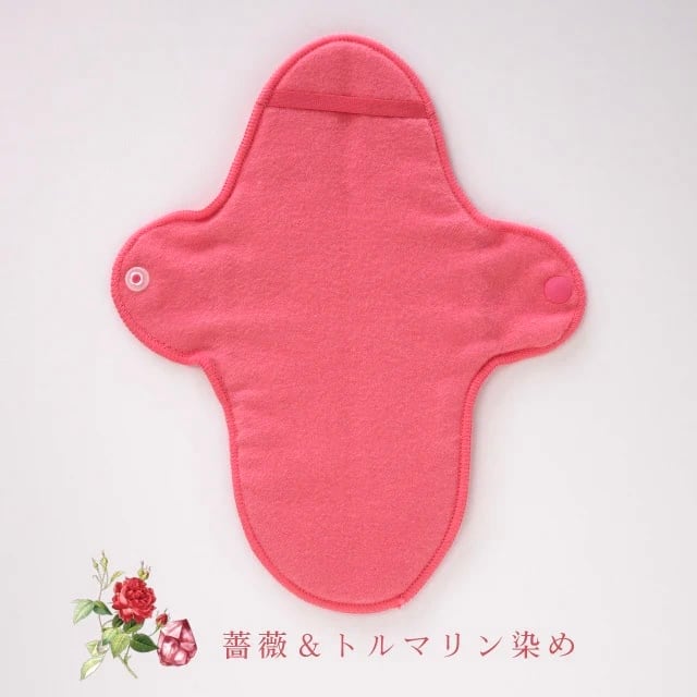 植物原料と天然石トルマリンで染めたオーガニックコットンのBotanical Warm Wear布ナプキン・シリーズは、生理中の心と身体を温め癒してくれます。