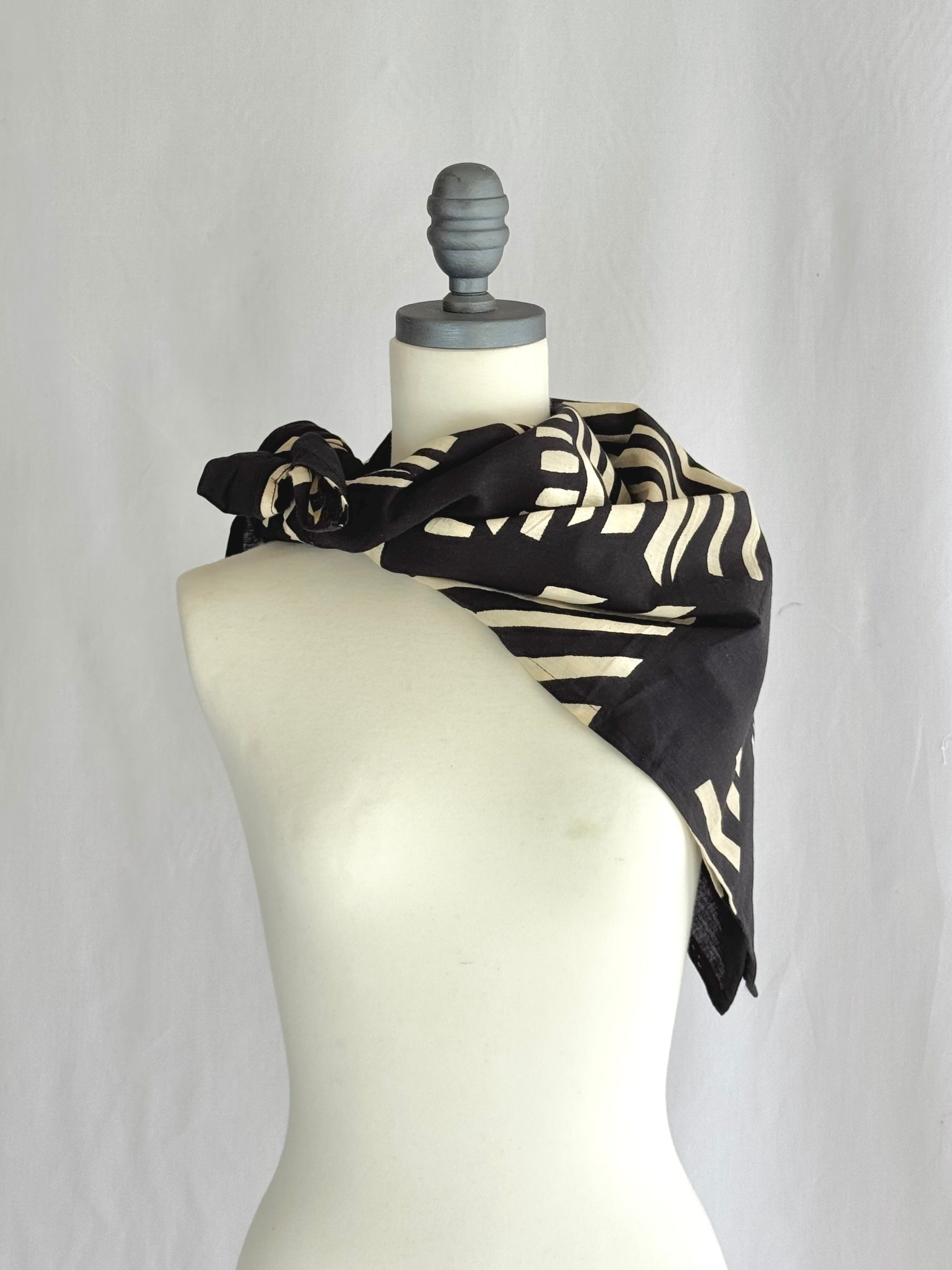 インドの伝統工芸ブロックプリントでプリントされたオリジナル感たっぷりのコットンスカーフ。