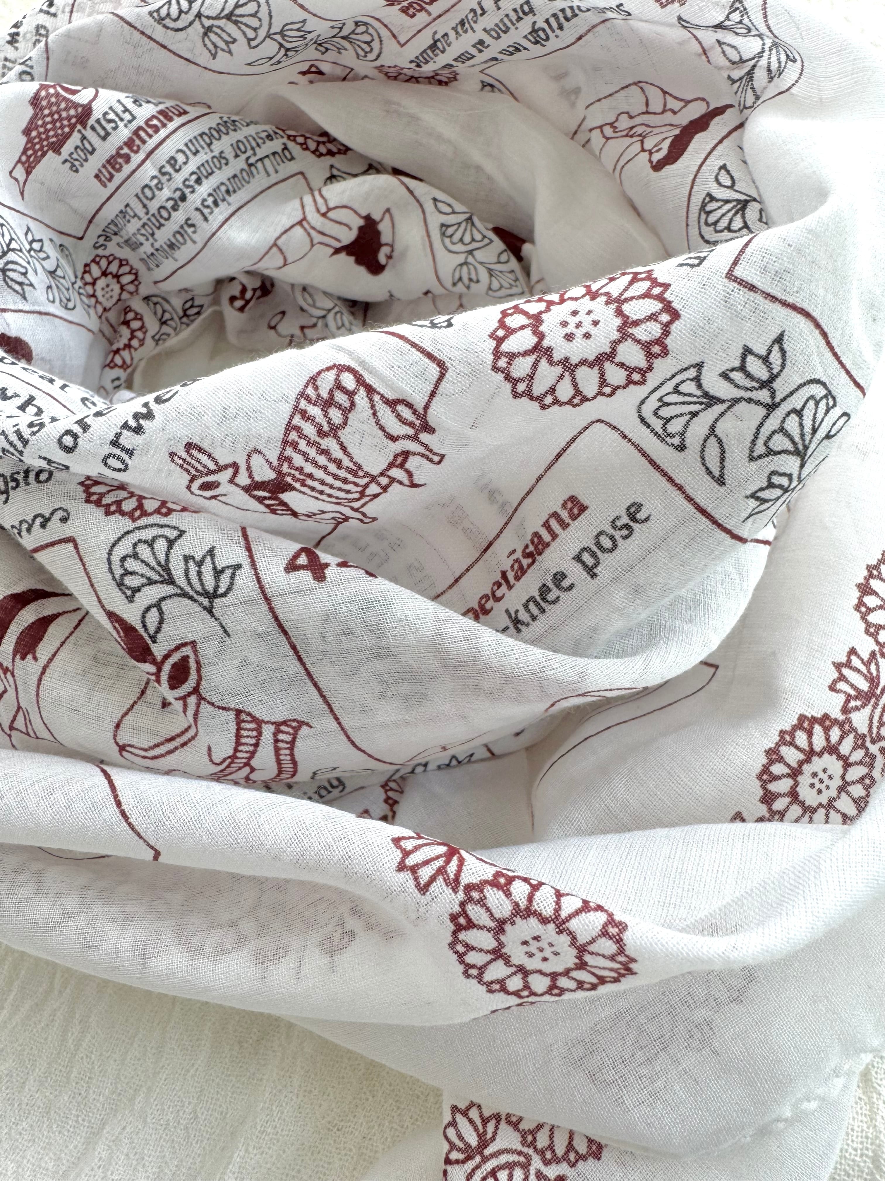 ヨガのシークエンスがプリントされているとてもユニークなショールです。