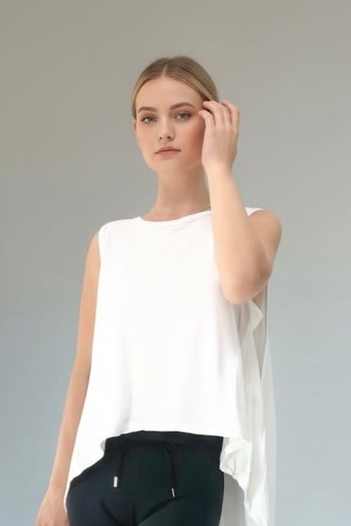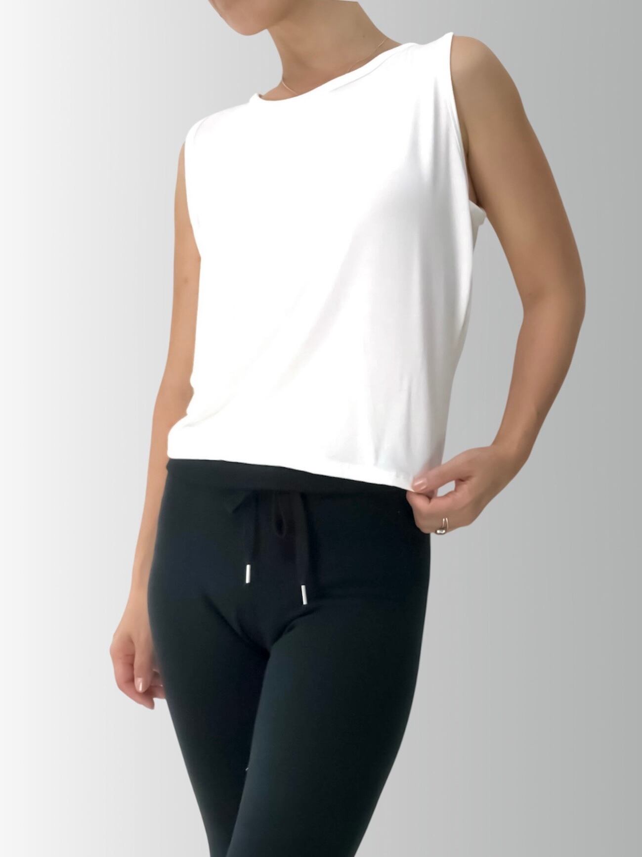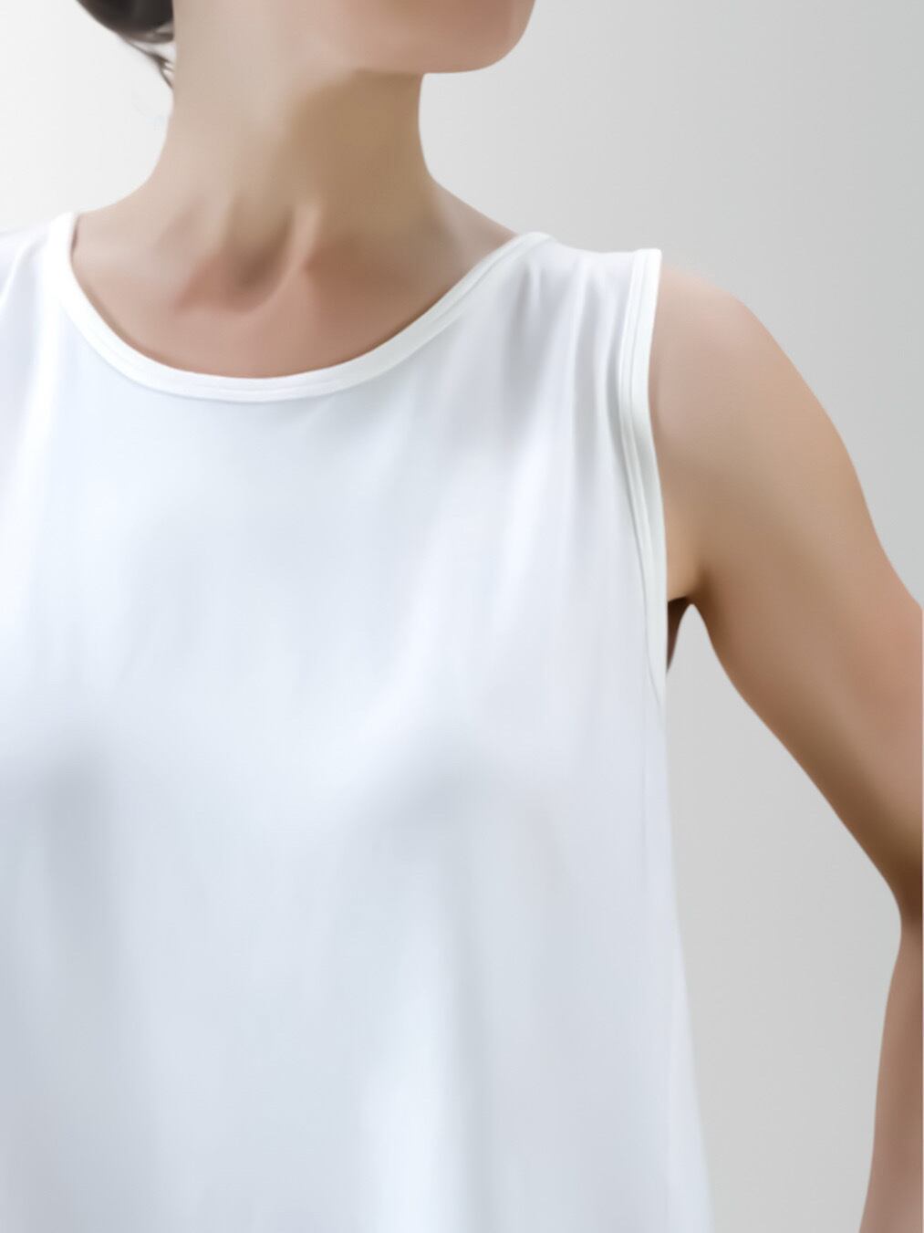 背中を美しく魅せる「バックオープンタンクトップ」です。サラサラとした気持ち良い生地が、着心地の良さを実現し、ストレスフリーのコーディネートに最適なアイテムです。