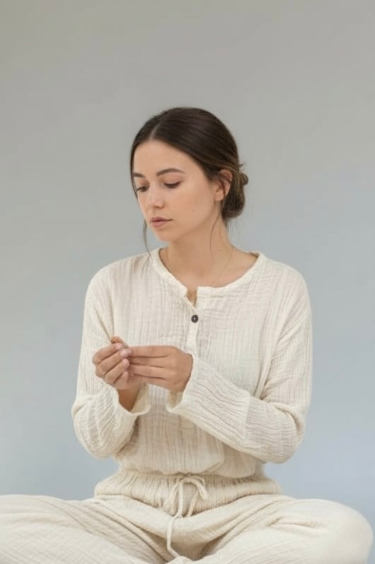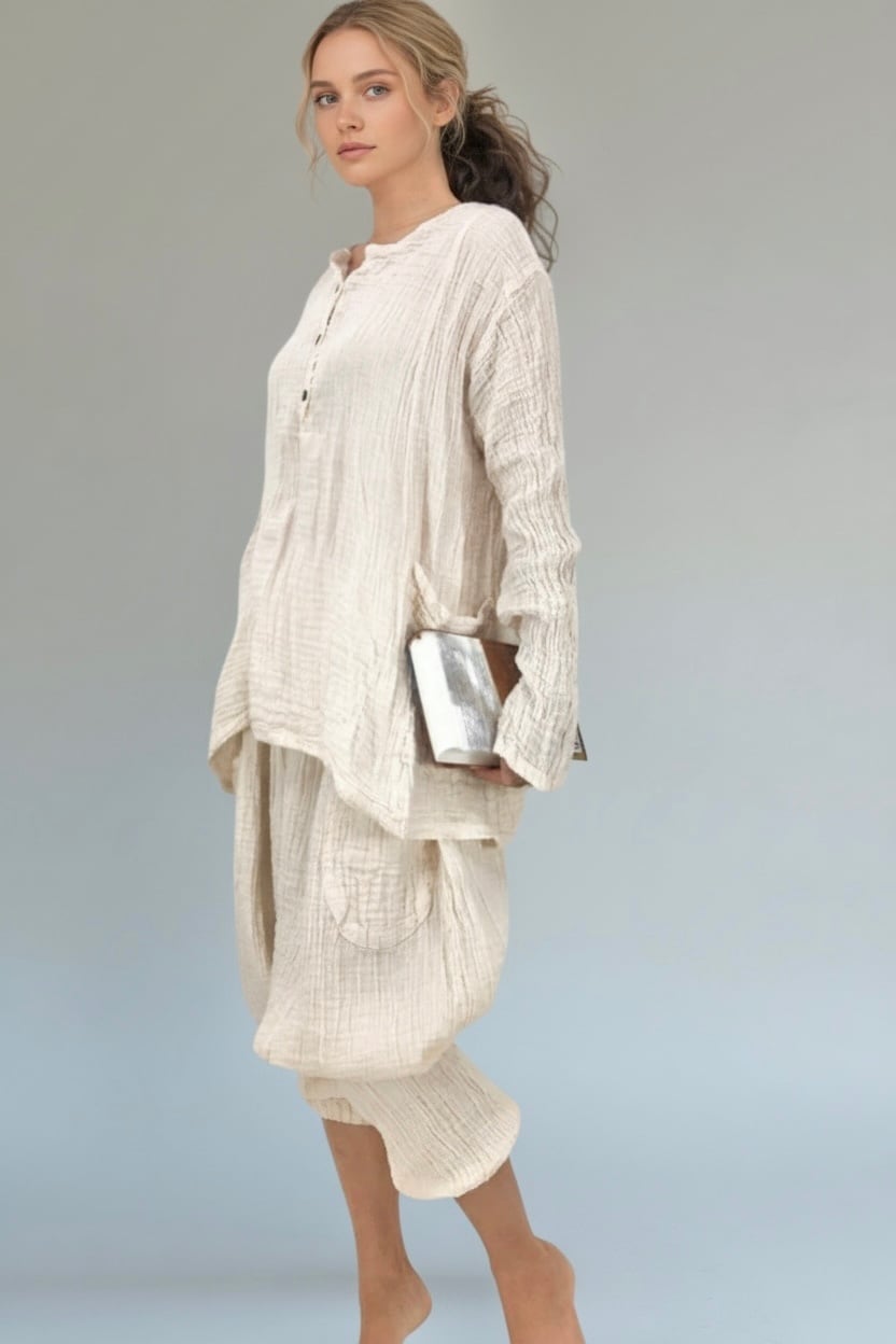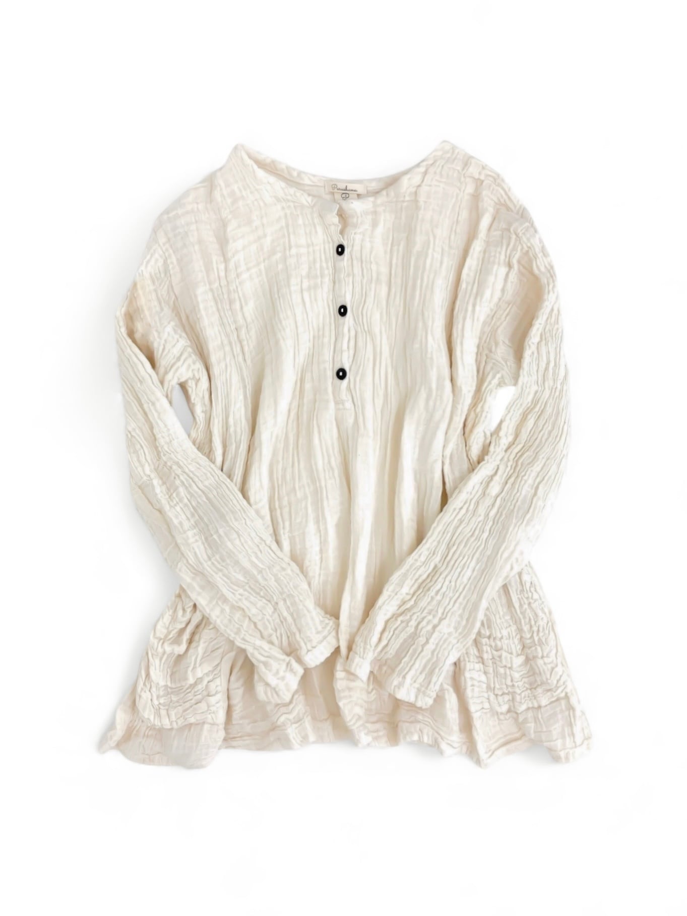 ダブルガーゼ地を使用したヘンリーネックトップ