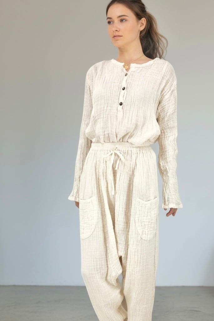 モデル157cm Bottoms : ダブルガーゼサルエルパンツ