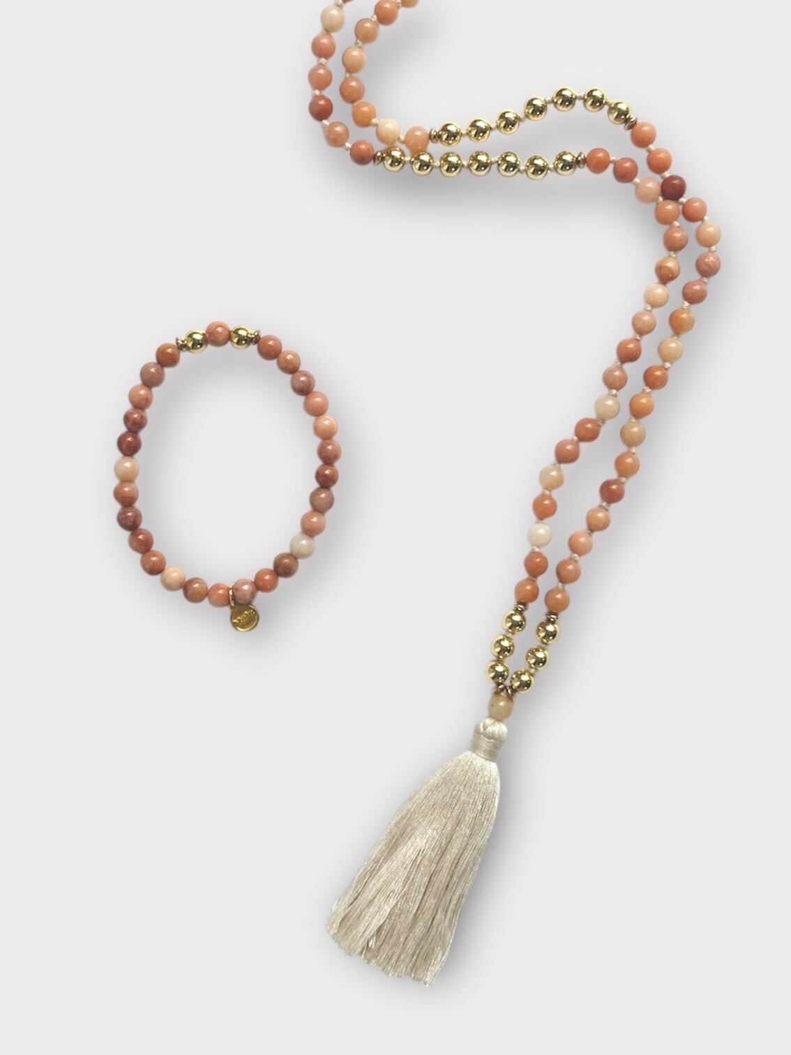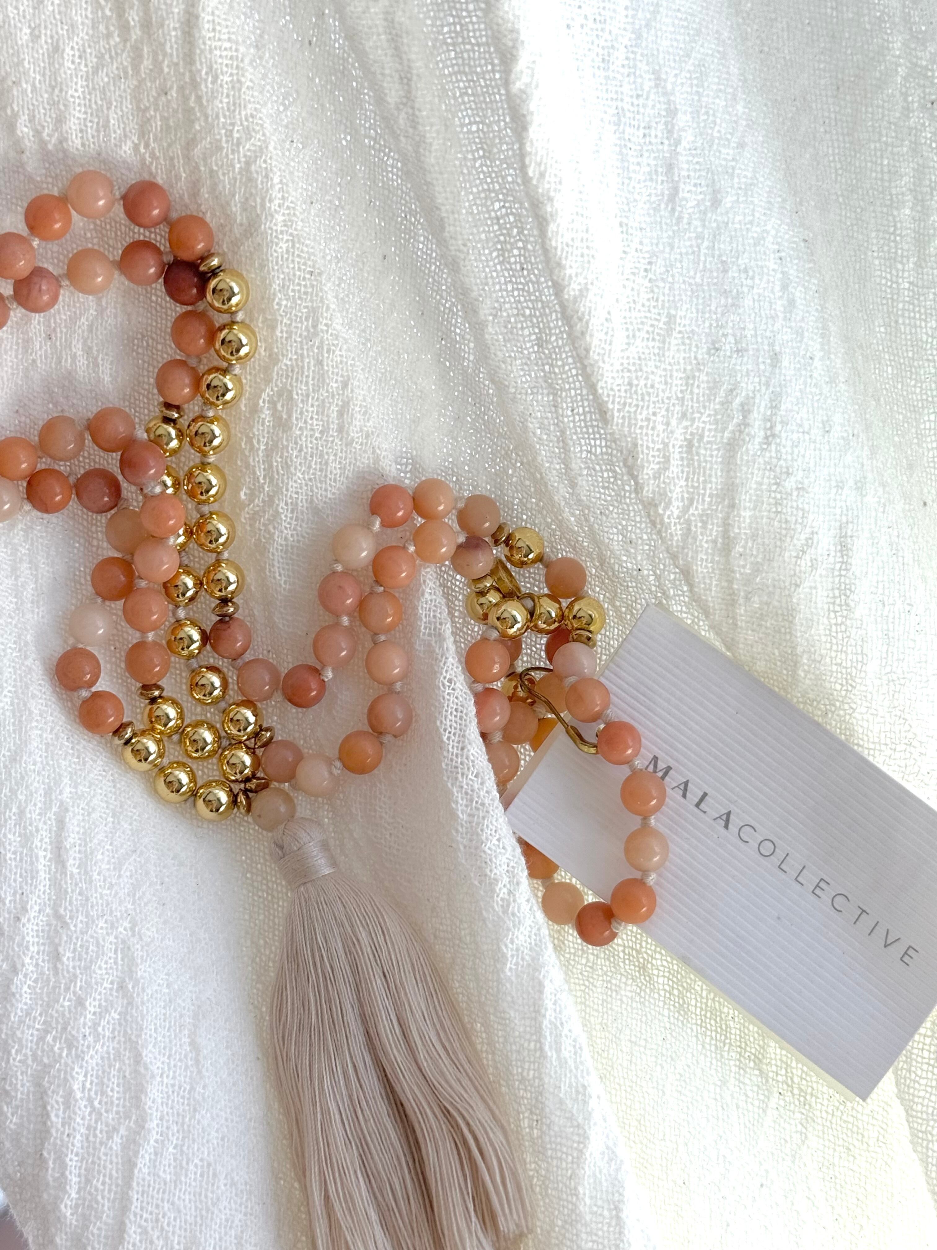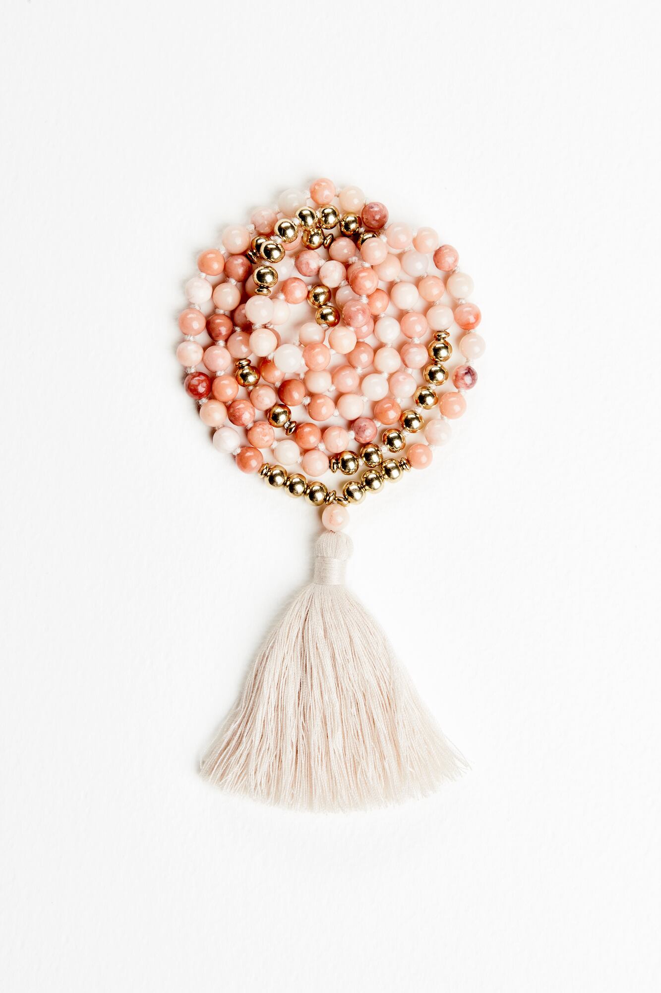 108個のビーズからなるマーラーは、 全て手作業で作られる伝統的な方法を使用して作られました。”輪”を意味するマーラー、瞑想時にマントラを唱える道具として使用し、音の波動で集中力を高め、意識を高いところへ持っていきます。