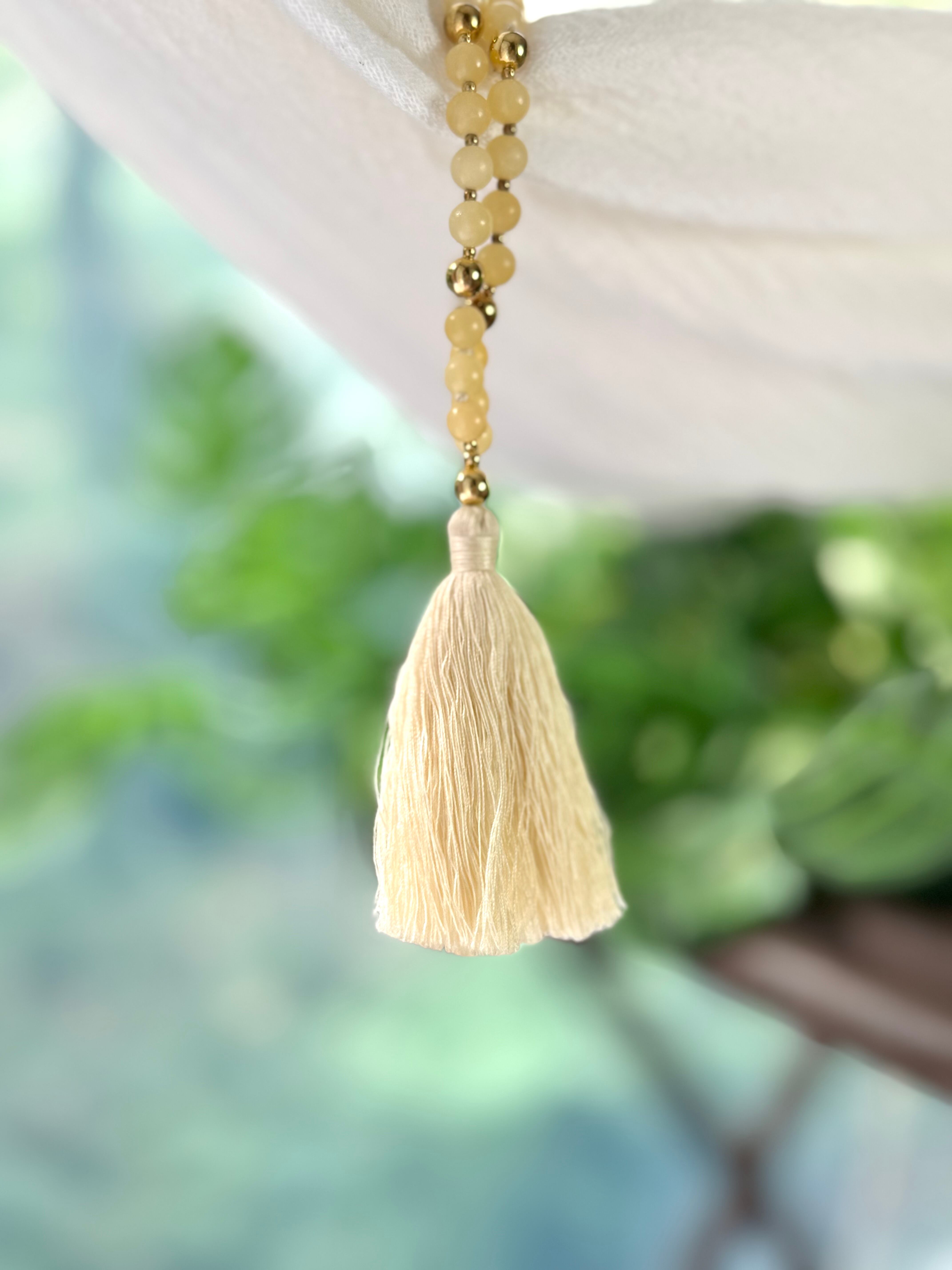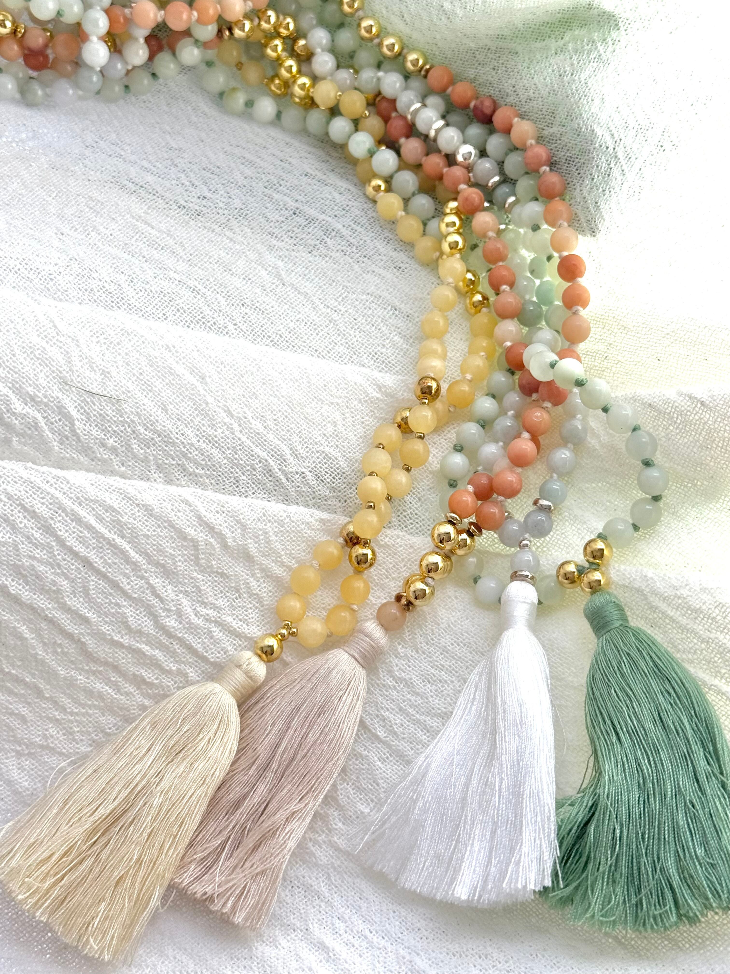 ハニージェイドの6mmビーズを使用したMalaネックレス。