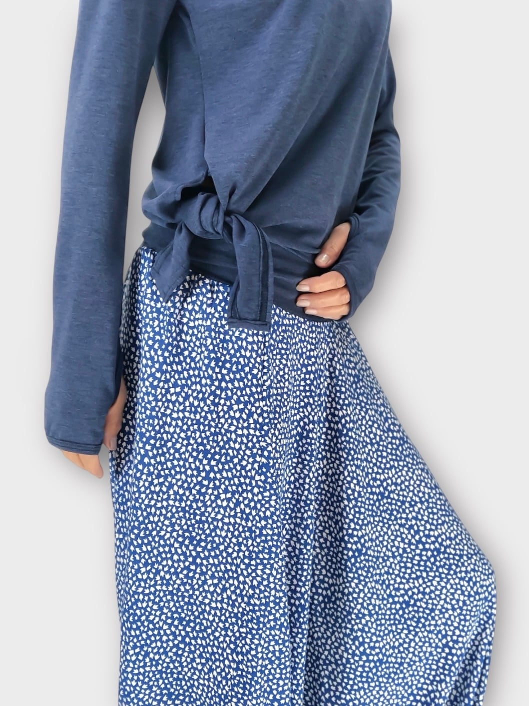 サイドスリットカットソーは、ゆったりしたボトムスやレギンスとも相性抜群!サイドを結んでしてウエストラインを引き立たせたり、アウトでゆったりとアシンメトリーシルエットを楽しんだりできます。また、スカートと合わせることで、カジュアルからエレガントまで幅広くコーディネートが可能です。足元にスニーカーはもちろん、ブーツやヒールを合わせても素敵です。