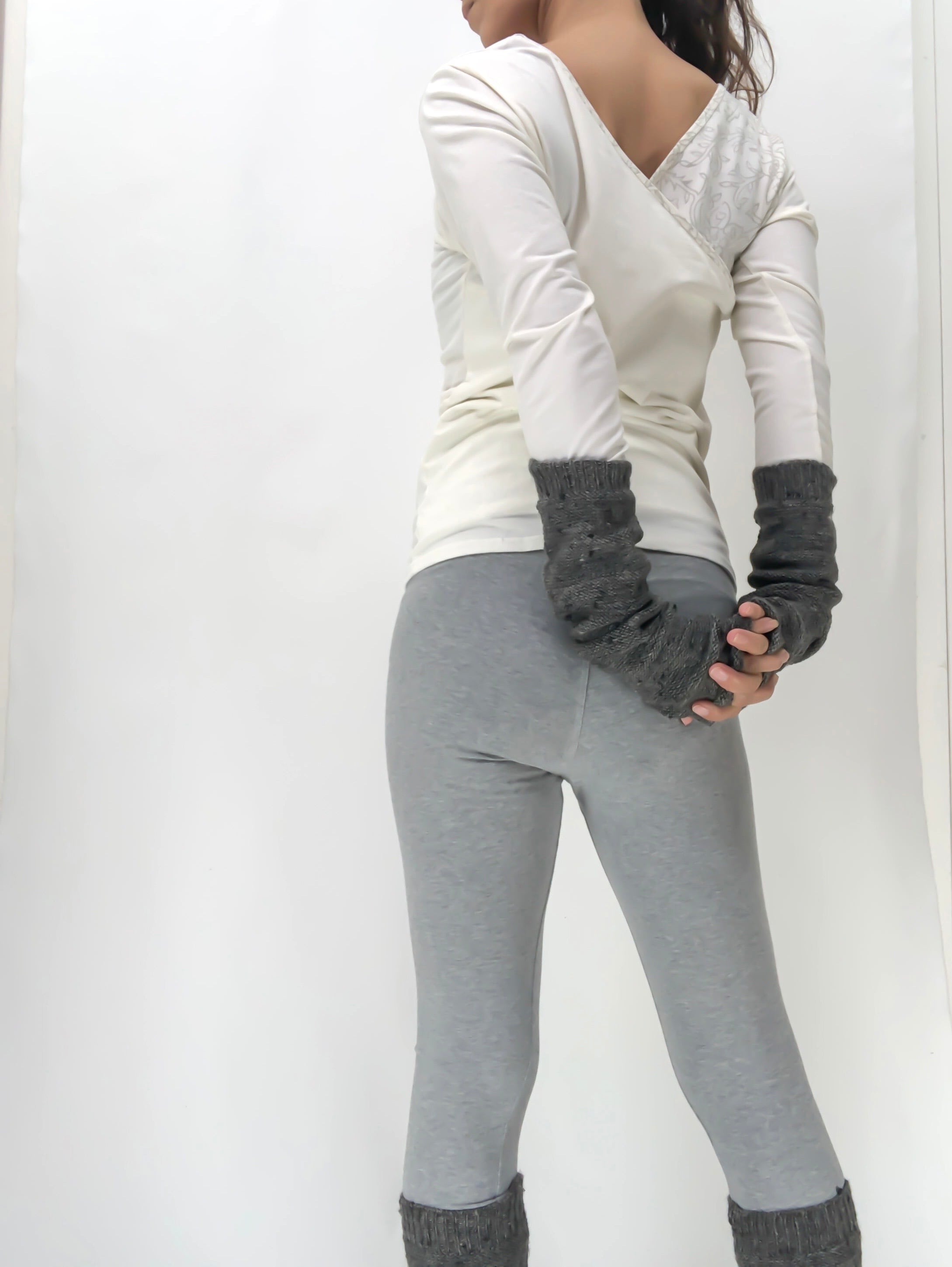 同じタイプでレッグウォーマーとのコーディネートも素敵です。